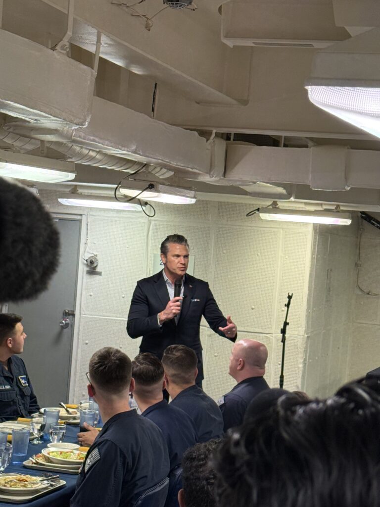 “Platforms just like this one did some pretty incredible stuff on behalf of the American people just a few nights ago. Crews of that carrier and what they were capable of doing and the power that they were capable of projecting on behalf of the United States of America is something no other country in the world can do and not even close,” Hegseth said.